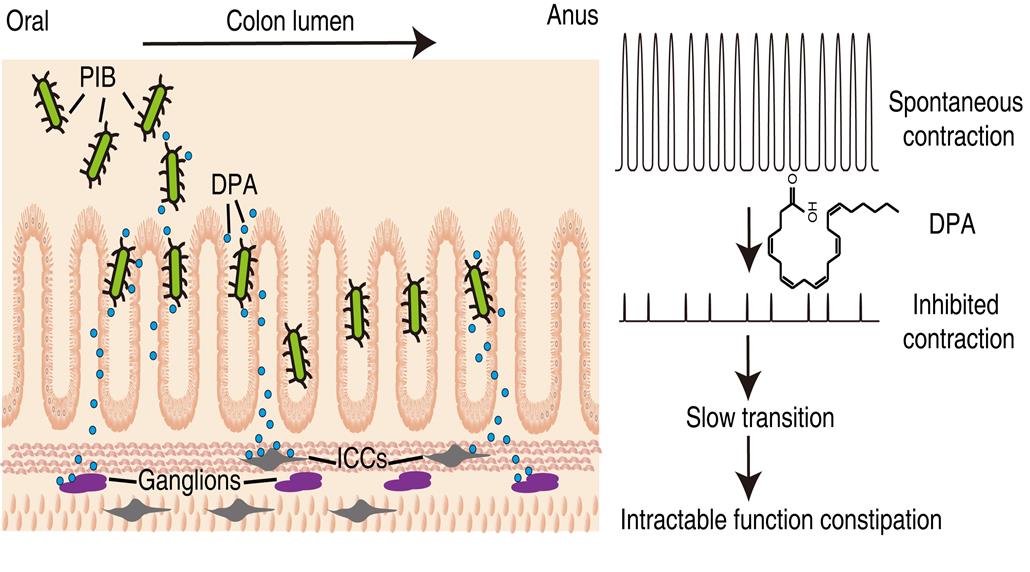 2022年,南京大学医学院朱敏生教授团队联合东部战区总医院姜军主任医师团队经十年研究,首次发现顽固性便秘是由于感染了一类细菌(简称PIB)引起,这种细菌可定殖于结肠粘膜,通过产生长链脂肪酸(DPA)抑制肠道动力诱发顽固性便秘;用适当的药物和噬菌体可以清除PIB,使便秘症状完全缓解。该研究成果已发表在国际著名的医学杂志《临床研究杂志》(The Journal of Clinial Investigation)上,并被选为重点推荐论文。