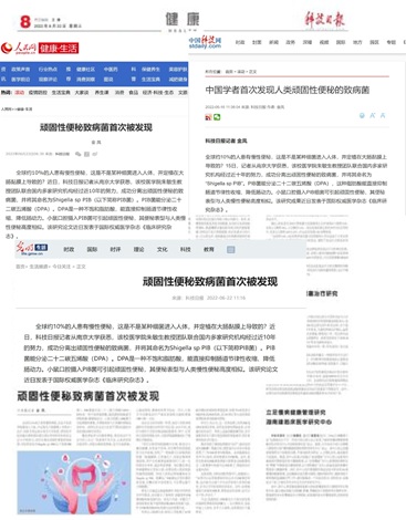 科技日报专访-中国学者首次发现人类顽固性便秘的致病菌!